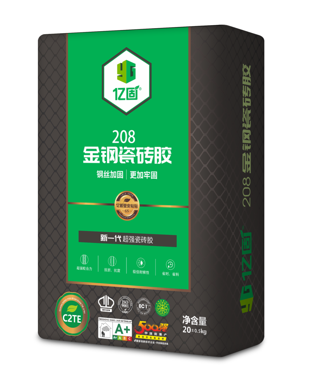 亿固第八代超强背胶为双组份高聚合物、绿色环保、无毒无味无污染,具有优异的粘结性,大幅度地增加粘贴玻化瓷砖的粘结效果,减少砂浆开裂脱落,是大理石、薄板、玻化砖脱落的克星。有效的提高了饰面材料与基材之间的粘结强度,彻底解决了空鼓脱落带来的种种危害。