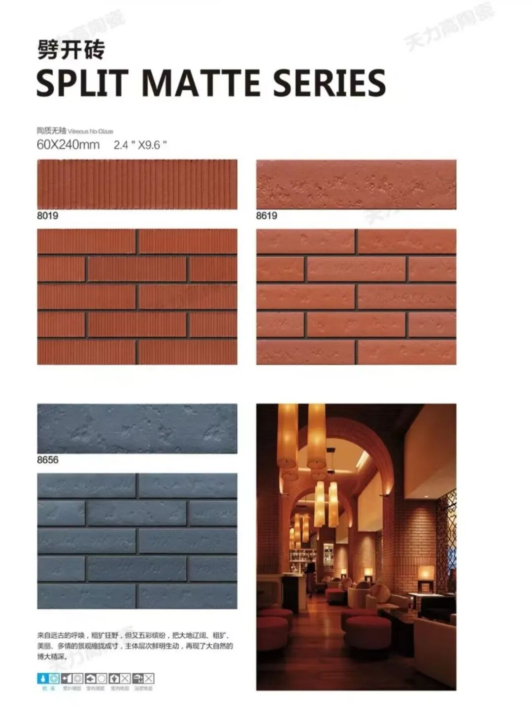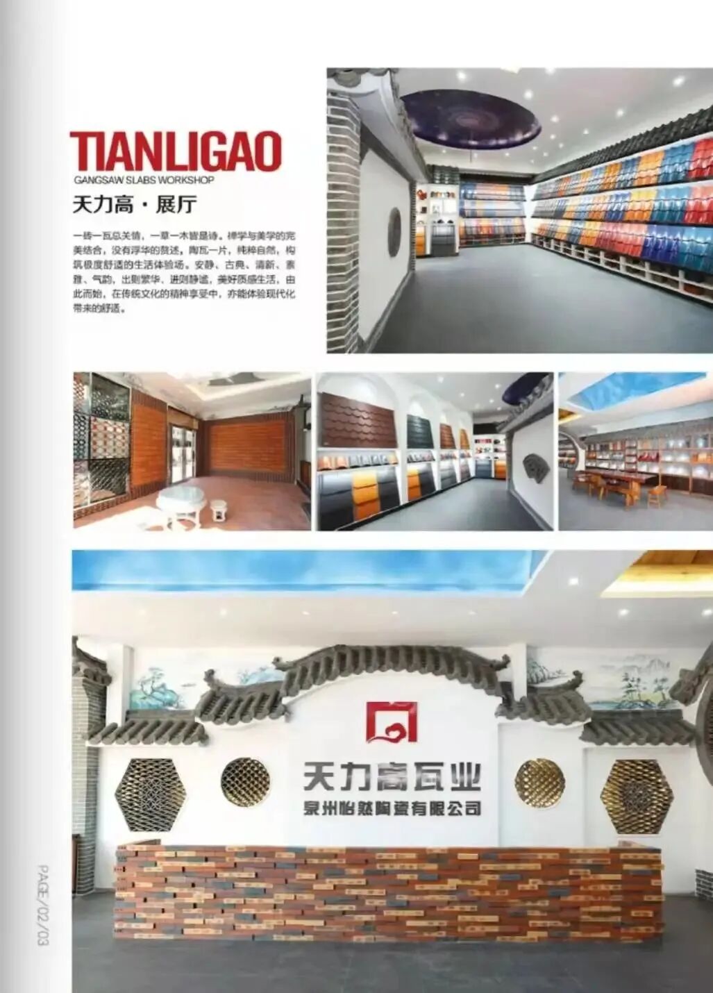 福建天力建材有限公司是一家专业生产建筑装饰陶瓷的企业,多年来倾力专注于屋面瓦和劈开砖产品的研发和生产,产品畅销全国各大城市并出口到香港,马来西亚、印尼、韩国、越南等国家和地区。公司位于全国五大建筑陶瓷生产基地之一的"中国陶瓷重镇”晋江市磁灶镇,快捷、畅通无阻的优越交通条件给每个消资者、每个合作带来了方便和满意。