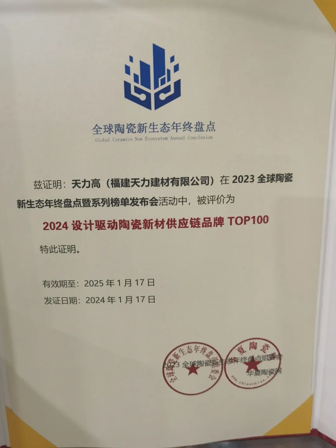 2006年通过IOS9001:2000质量管理体系认证证书,1999年被中华人民共和国建筑部、中国建筑报、房地产周刊联合授予“中国件数推荐生产企业”的光荣称号。